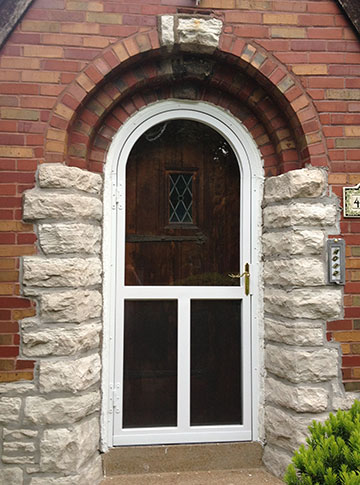 We start with a fully welded steel frame for strength and security. A beautiful powder coat finish is applied with 10 colors to choose from. We can design patterns that will be unique to your home and taste. We make and ship Round Top Storm Doors from coast to coast.